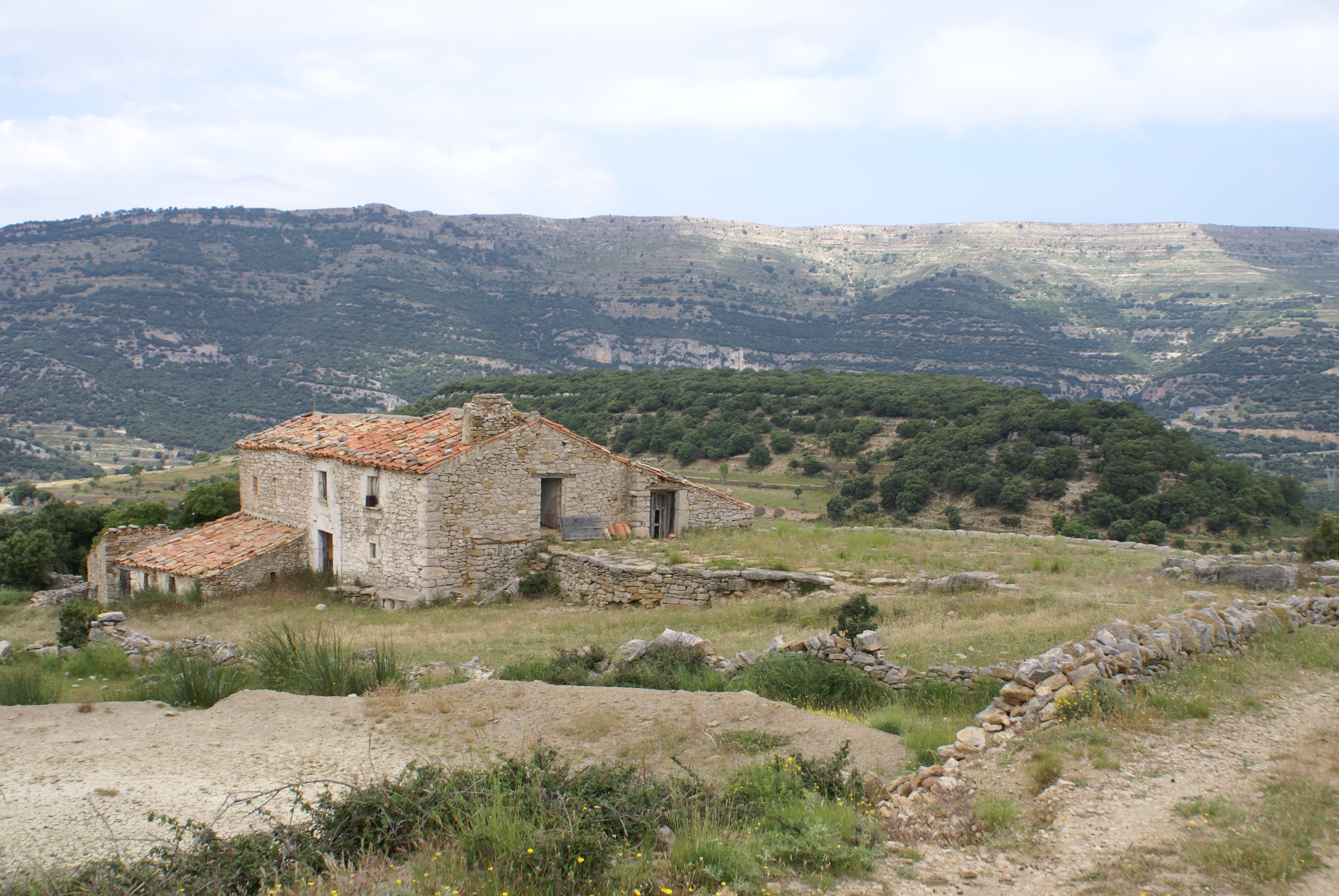 Esta zona se caracteriza por sus sierras amesetadas, las características “moles” o muelas, atravesadas por profundos y abruptos barrancos que drenan en las grandes ramblas, ge- neralmente secas. En sus laderas escalonadas se intercalan innumerables bancales construidos con piedra seca que, por desgracia, sufren un proceso progresivo de abandono. Dichos ban- cales se usaban para el cultivo de almendros y olivos, aunque en la actuali- dad son lugares donde los rebaños de cabras salvajes pastan con frecuencia.